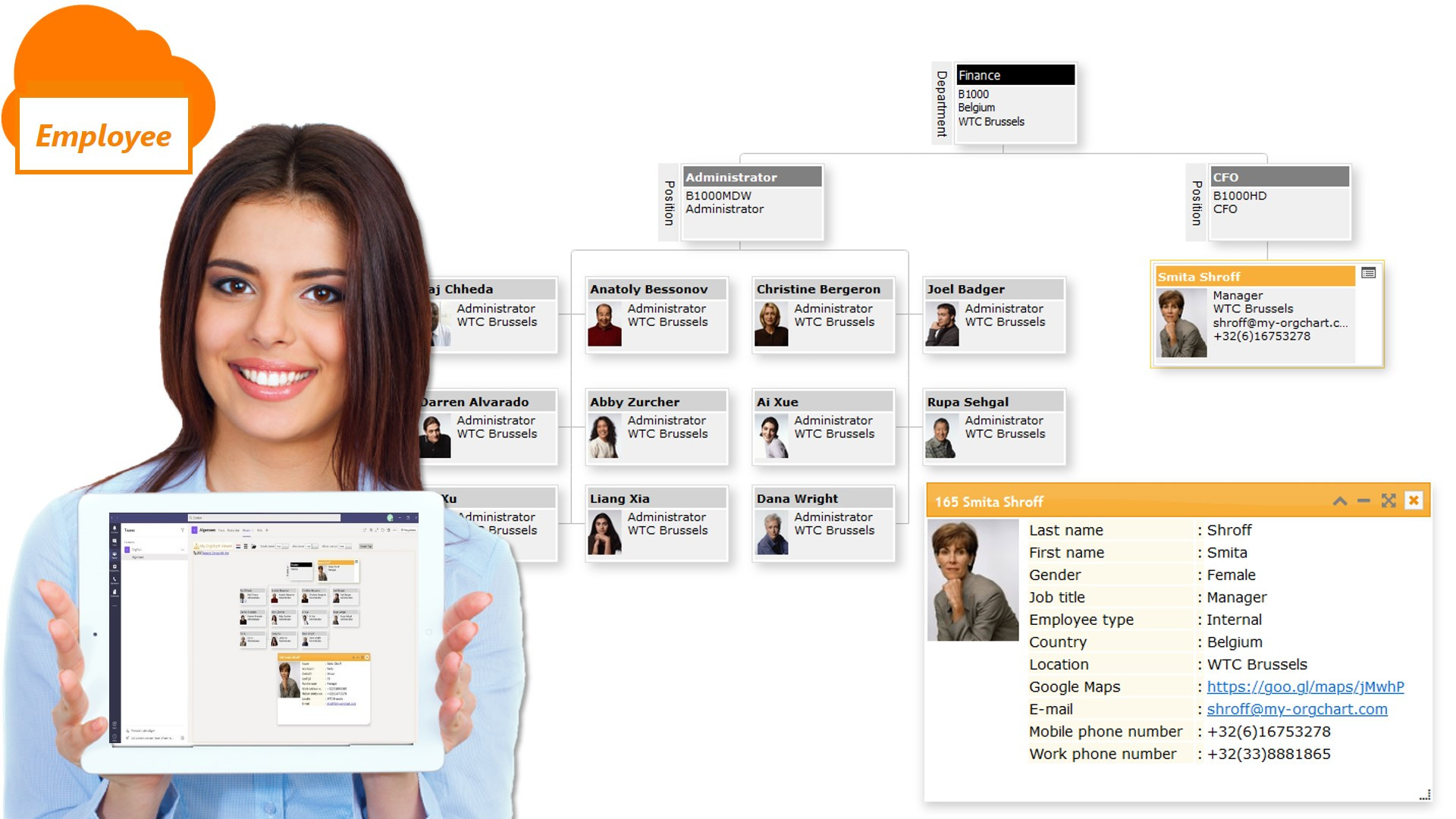 Met de Connector wordt een organigram automatisch aangemaakt en in bestandsvorm op-geslagen. Daarna kunnen eindgebruikers dit organigram bekijken. De Viewer biedt ze lees functionaliteit: navigeren, zoeken, selecteren, in- en uitzoomen, details opvragen, draaitabel-analyses en nog veel meer. Ook is er een taalswitch knop. De Viewer wordt als company licentie verkocht, zodat iedereen er gebruik van kan maken.